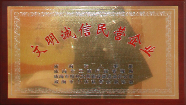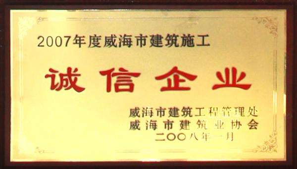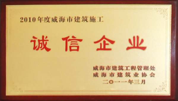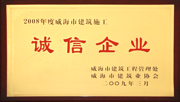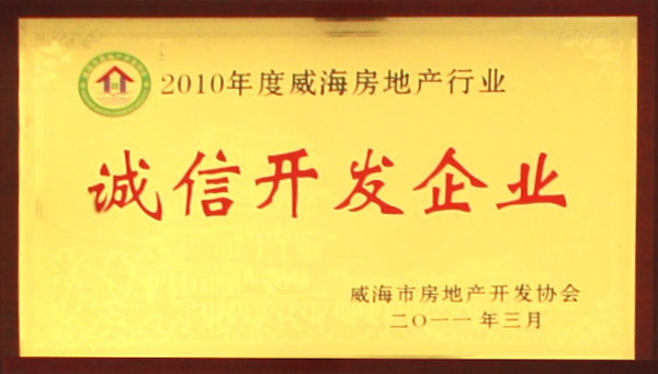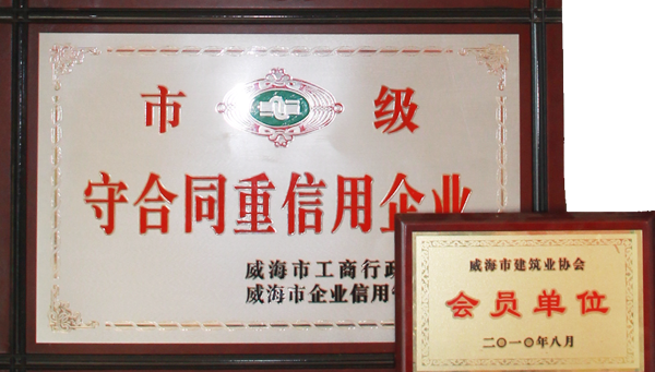 公司連續(xù)八年榮獲威海市“誠信開發(fā)企業(yè)”、“建筑施工誠信企業(yè)”,連續(xù)九年被評為威海市級(jí)“守合同重信用企業(yè)”,多次被評為威海市“市級(jí)文明單位”、“質(zhì)量管理先進(jìn)企業(yè)”、 “安全管理先進(jìn)企業(yè)”,乳山市“優(yōu)秀企業(yè)”、“先進(jìn)民營企業(yè)”、“納稅明星企業(yè)”,在社會(huì)上逐步樹立了誠信、穩(wěn)健的企業(yè)形象。